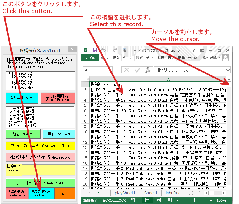 動画マニュアル : 棋譜を読み、自動手動で動かす方法